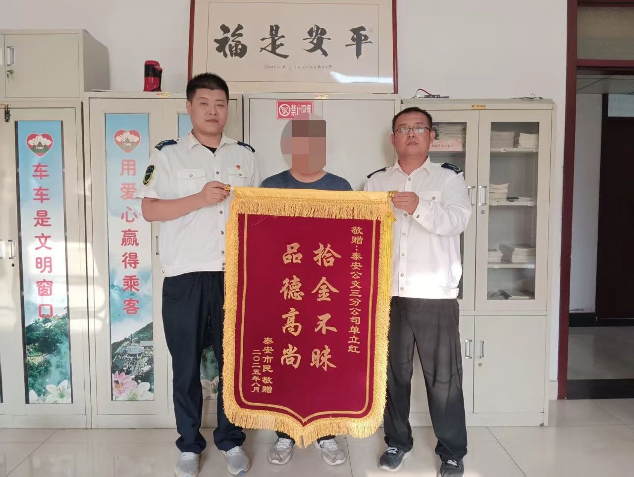 815日,泰城市民李女士的家人將一面寫(xiě)有“拾金不昧 品德高尚”的錦旗送到泰安公交第三分公司,向7路公交駕駛員單立紅表達誠摯感謝,感謝其撿到李女士遺失的手機后妥善保管并歸還。