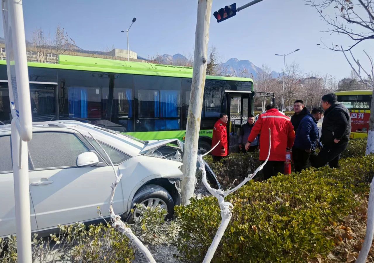近日,泰城發(fā)生了一起令人動(dòng)容的暖心救援事件,公交人的英勇表現成為街頭巷尾熱議的焦點(diǎn)。2月10日上午11時(shí)左右,在泰山學(xué)院附近發(fā)生了一起令人揪心的交通事故。一輛白色小客車(chē)突然失控,一頭沖進(jìn)了路邊的綠化帶,猛烈撞擊樹(shù)木后,車(chē)輛瞬間冒出滾滾濃煙。情況萬(wàn)分危急,車(chē)主母子二人被這突如其來(lái)的變故嚇得呆立在路旁,臉色蒼白,驚魂未定,面對冒煙的車(chē)輛,兩人完全不知所措,只能無(wú)助地看著(zhù)。