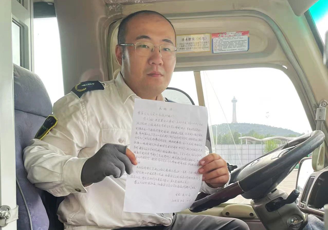 耐心安撫好孩子后,李樂(lè )軍引導孩子將電話(huà)交給家長(cháng),順利與王先生取得聯(lián)系。并在恒大城公交站將手機交給王先生。王先生從李樂(lè )軍手中接過(guò)手機,激動(dòng)得連聲道謝。為了表達這份感激,他特意寫(xiě)下感謝信,親自送到第一分公司。